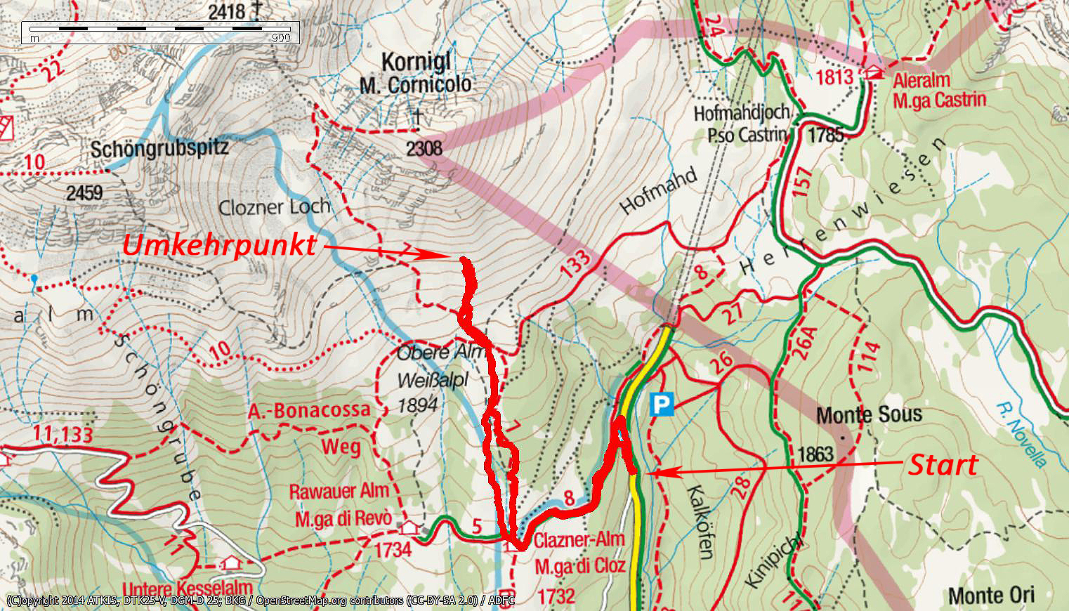 | Ausgangspunkt | Parkplatz nach Tunnel Hofmahd (1700 m) |