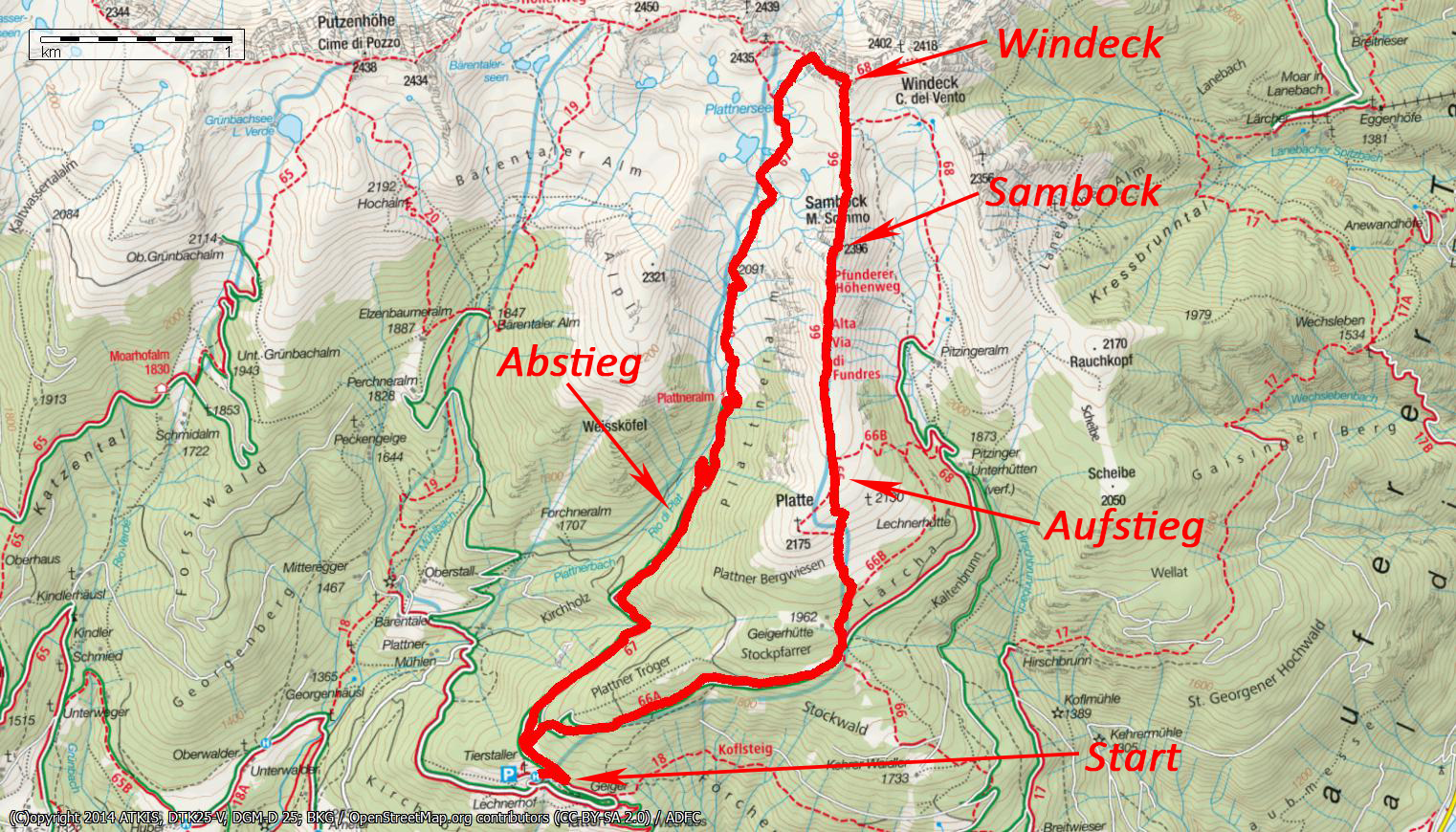 | Ausgangspunkt | Lechnerhof (1600 m) |