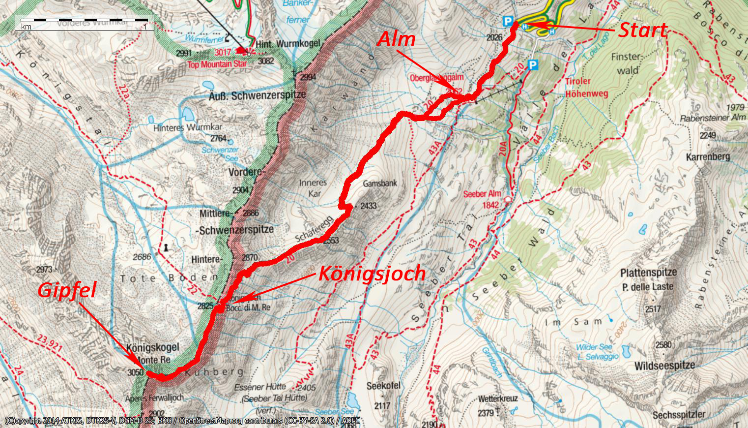 | Route | Steig 20, ab Königsjoch nur mehr Steigspuren |