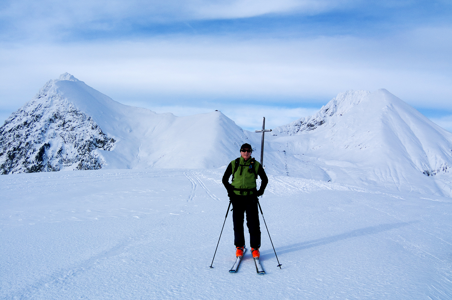 Start um 20 Min. vor Eins. Anfangs zwei, drei eisige Stellen auf dem Weg, dann aber mit verschiedenem Auf und Ab zur Maiser Alm und weiter immer auf dem Weg zu einer weiteren kleinen Almsiedlung. Dort nicht weiter zum Kreuzjöchl, sondern Weg und Spur direkt zum Spieler. Kurze Rast, Imbiss, Gipfelphoto und dann Abfahrt über Schartboden Richtung Meraner Hütte. Abfahrt nicht aussagekräftig, da windverblasen und hart. Da mir ein anderer Tourengeher am Gipfel gesagt hatte, dass normalerweise kein Problem bestünde, einmal mit dem Lift aufzufahren, bin ich von der Meraner Hütte zur Talstation des Oswaldliftes gefahren und habe dort gefragt, ob ich auffahren könnte. Kein Problem. Ich bin dann von der Bergstation über die Pisten bis nach Falzeben gefahren. Ging relativ gut, kein Vergleich mit letztem Jahr. Lässt hoffen.