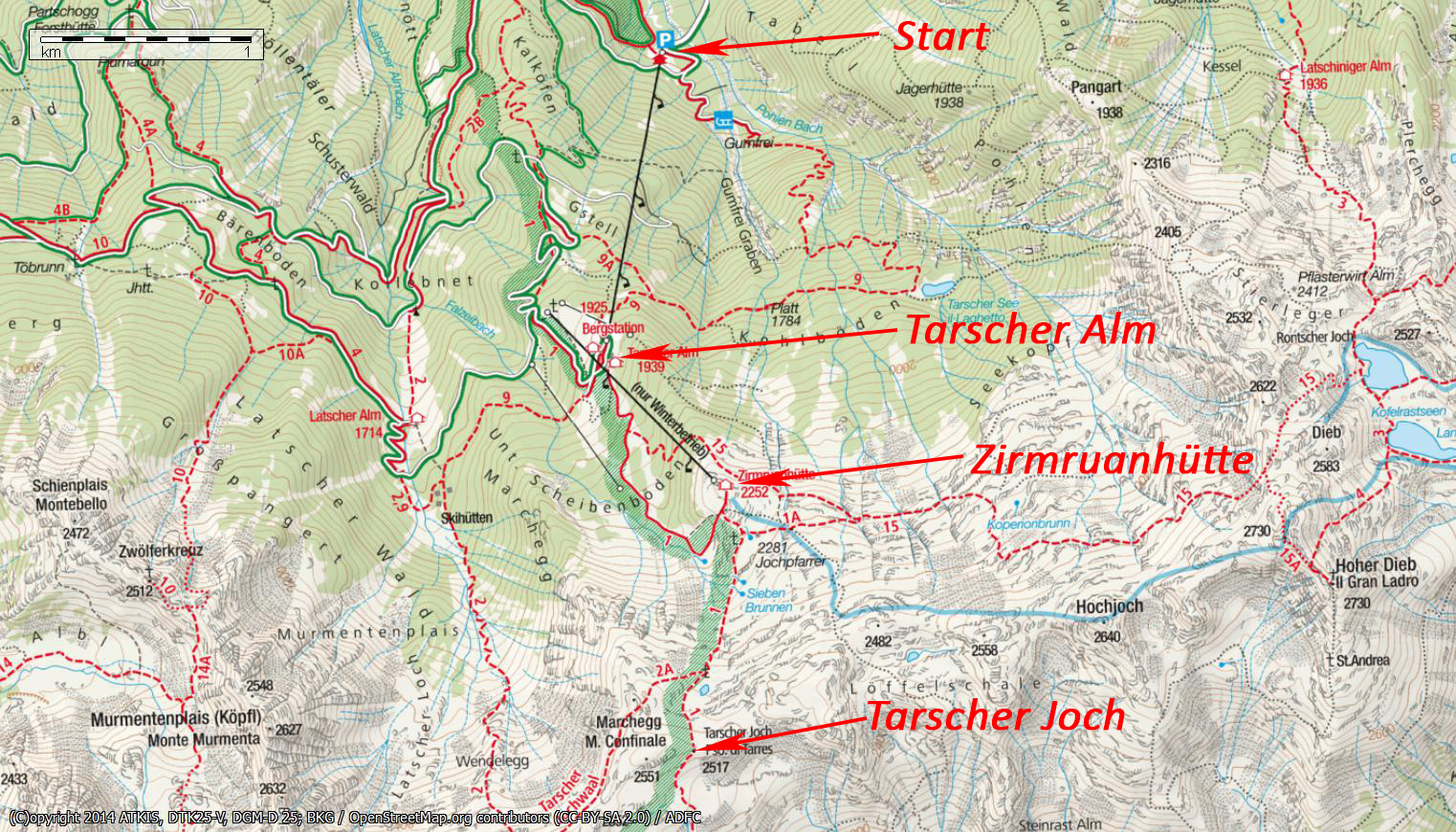 | Karten | Tabacco 045 "Latsch-Martell-Schlanders" 1:25000 |