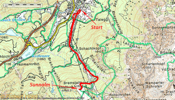 | Ausgangspunkt | Tour 1: Talstation Marienbergalmbahn (1012 m) Tour 2: Abzweigung der Straße nach Bichlbächle (1143 m) Tour 3: Abzweigung der Straße nach Kelmen (1350 m) |
