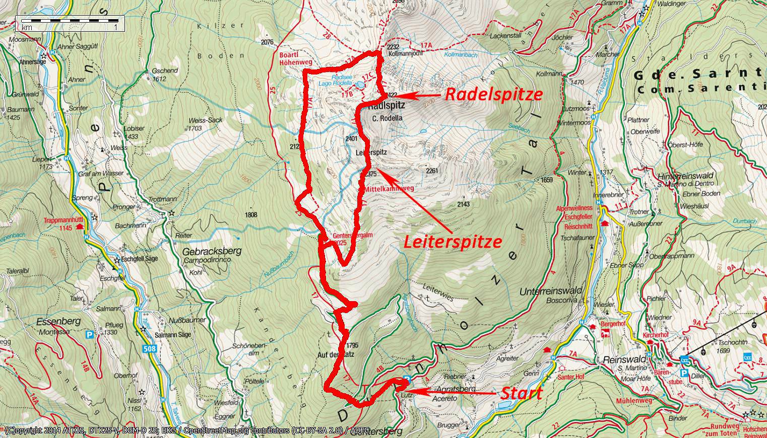 | Karten | Tabacco 040 "Sarntaler Alpen" 1:25000 |