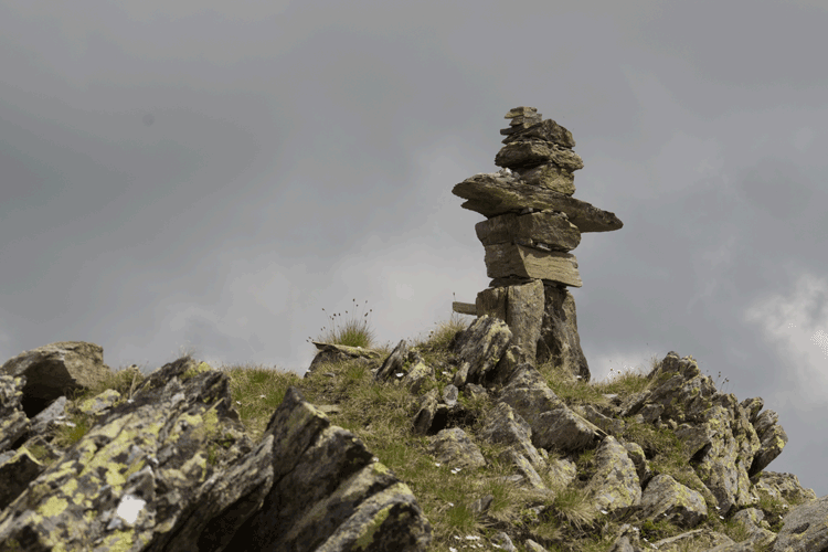 | Persönliche Bewertung | *** ca. 16 km; lang ; ab Taschljöchl wenig begangen, eigentlicher Gipfel unklar, Gipfelplateau mit drei etwa gleich hohen Erhebungen, höchste davon laut Karte 3115 m, Gipfel auf Karte aber mit 3099 kotiert, auf namenloser Erhebung im Kamm zum Taschljöchl fast mannsgroßer Inukshuk (wird von den Inuit (Eskimos) in der kanadischen Subarktis als Wegmarker verwendet = aus Steinen gebautes Männchen). |