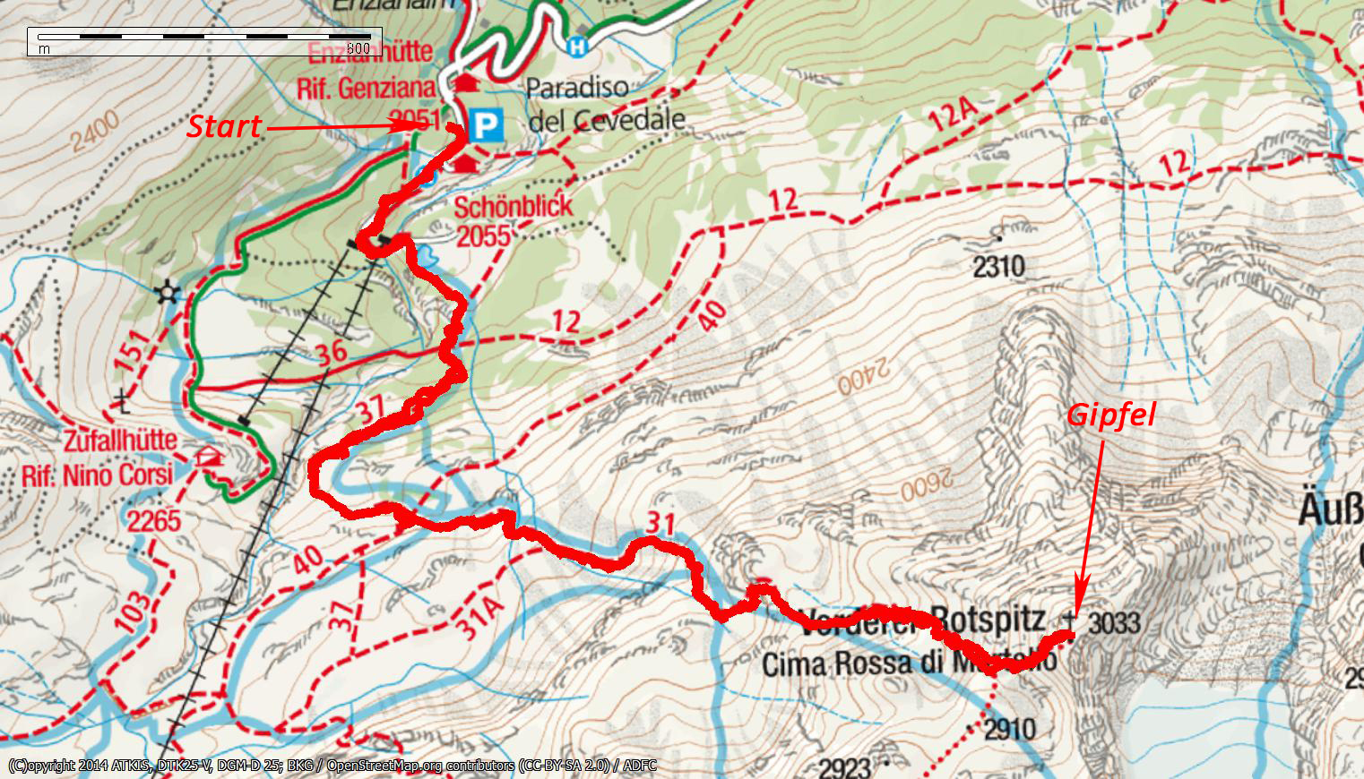 | Persönliche Bewertung | *** ca. 9,8 km; kurz und steil; unter Gipfel Stahlseil zum Halten; bei schönem Wetter wahrscheinlich schöne Aussicht auf Ortleralpen, weiter nicht, da praktisch alle Gipfel rundum höher. |