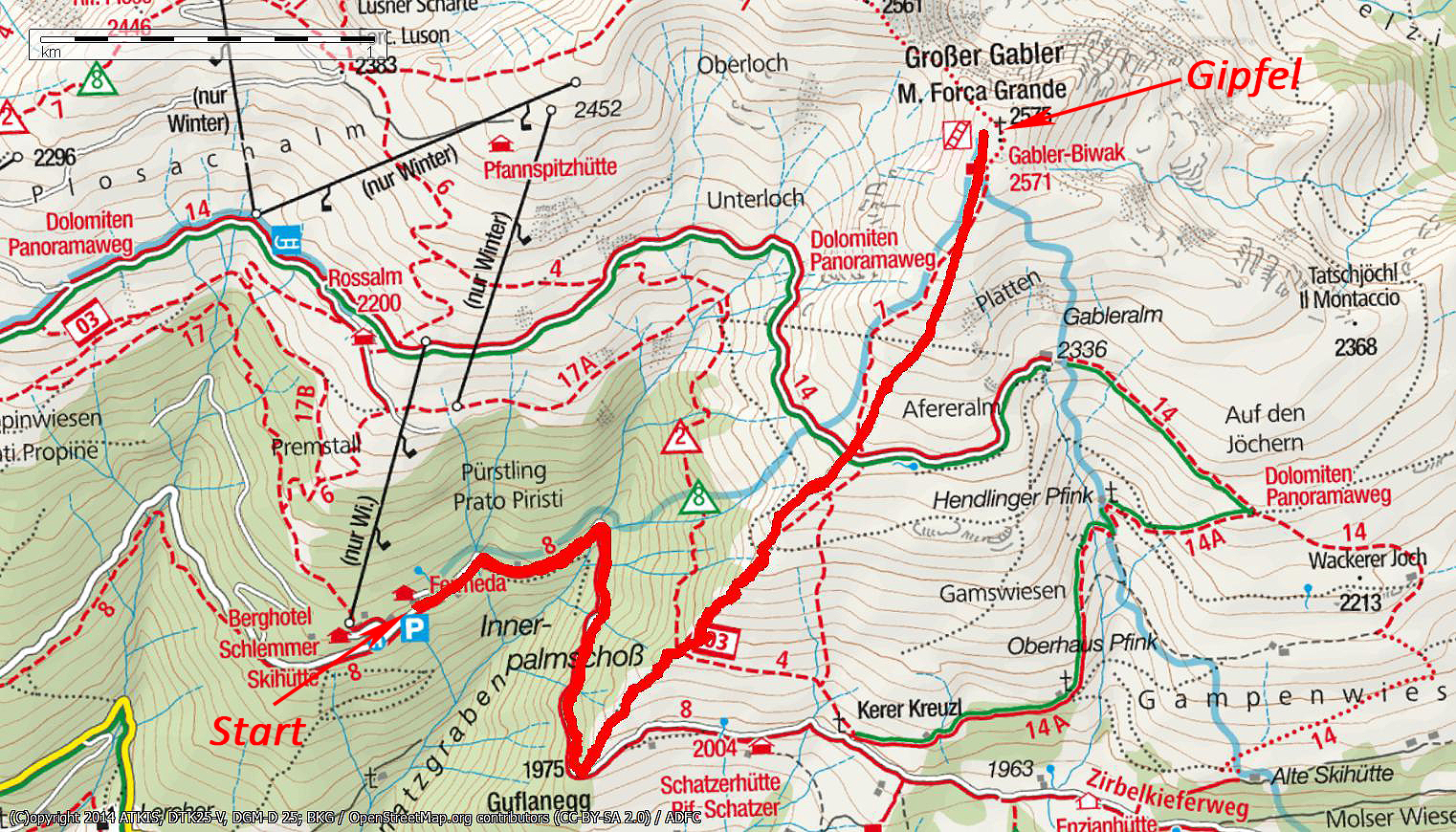 | Ausgangspunkt | Parkplatz bei Parkhotel Plose (1900 m) |