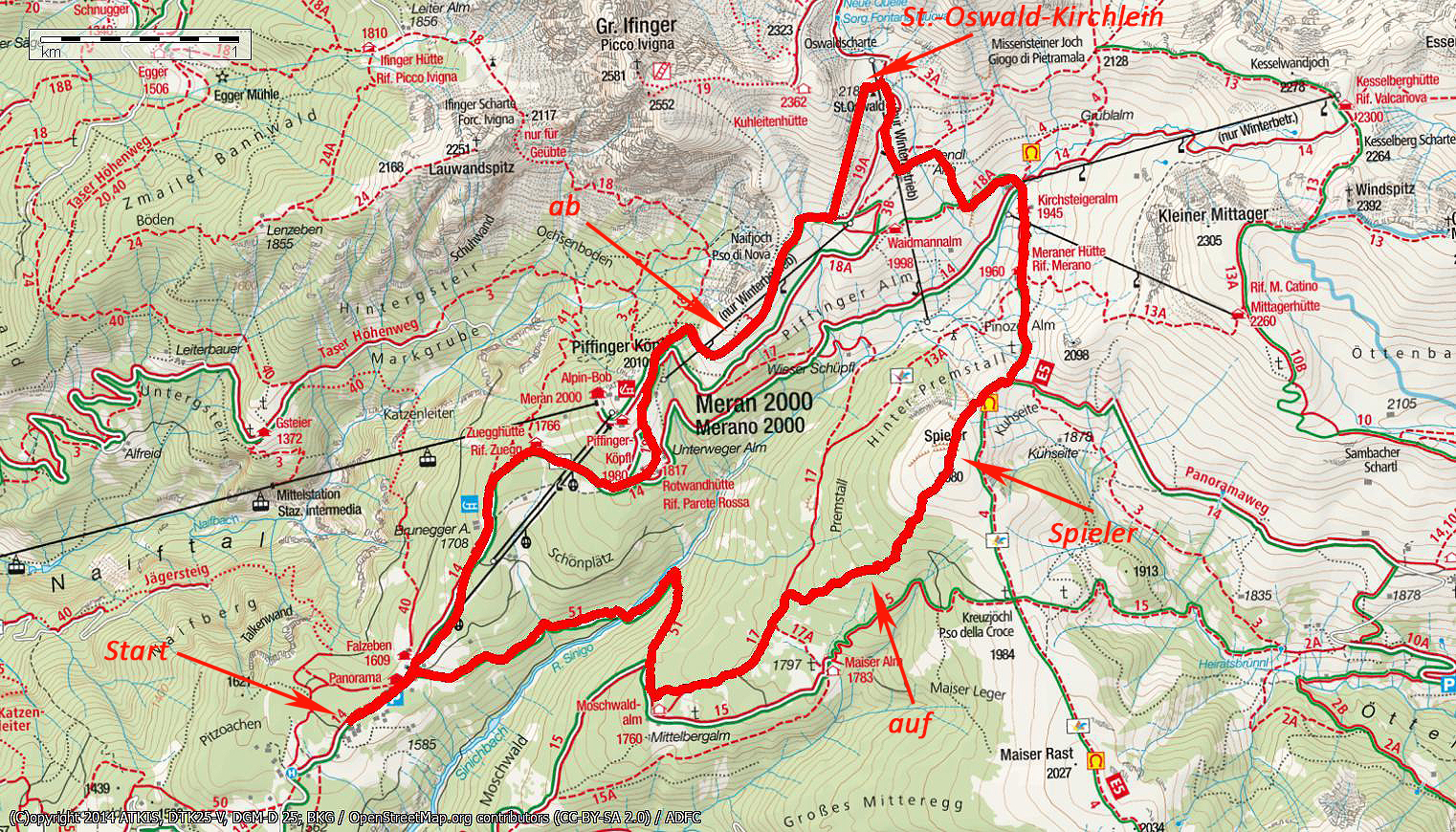 | Karten | Tabacco 011 "Meran und Umgebung" 1:25000 |