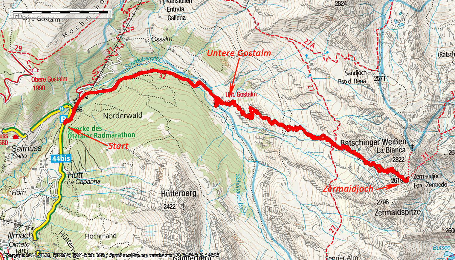 | Ausgangspunkt | Parkplatz bei Schneeberger Brücke (1665 m) |