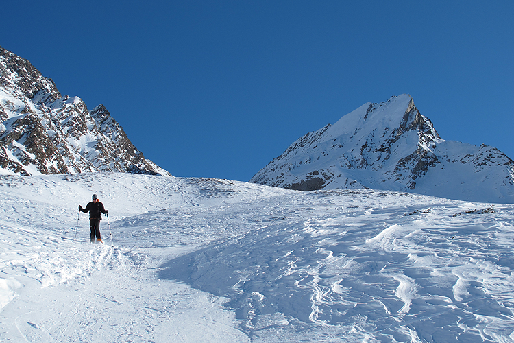 | Persönliche Bewertung | ** 11,56 km; im Bereich nach der Unteren Gostalm relativ steil (>30°, bei hoher Lawinengefahr eventuell etwas links aufsteigen), zerfahren, aber nicht schlecht; Wetter wolkenlos, aber im oberen Teil windig und kalt. |