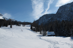 Die Kaiserschmarrenparty am Freitagabend (Pistenaufstieg und Abfahrt am Abend) habe ich sausen lassen, da ich mit meinem Knie nicht riskieren wollte, im Dunklen (mit Stirnlampe) abzufahren. Was das Testmaterial anging, habe ich für Samstag einen ABS-Rucksack der Fa. Snowpulse (jetzt Mammut) PRO 35 R.A.S. ausgeliehen. So bin ich am Samstag um 10 Uhrvon der Talstation der Ehrwalder Almbahn gestartet. Anfangs kurz über die Piste, dann einer Schispur folgend rechts ab. Die Spur ging abseitsder Piste, aber praktisch immer in Sichtweite der Piste, bergauf. Eine weitere Spur führte weiter nach rechts (Süden), aber da ich nicht wusste, wohin diese führen würde, bin ich der der pistennäheren Spur gefolgt. Nach ca. 300 Hm kehrte die Spur zur Piste zurück und ab da bin ich den Pisten gefolgt. Ich hatte mir ein zeitliches Limit von 2 Stunden gesetzt und so habe ich nach genau 2 Stunden gestoppt, auch da es für mich konditionell genug war und auch kein spezifisches Ziel (Bergstation, Gasthaus o.ä.) in Sicht war, das mich zum Weitergehen animiert hätte. Kurze Rast am Pistenrand mit heißem Tee und Müesliriegel. Anmerkung zum Tee: Beim Neujahrsausflug in die Schweiz (Lötschental) musste im Gasthaus, in dem ich mit Halbpension übernachtet habe, das Teewasser extra bezahlt werden (um die SFR 3 - SFR 4). Im Hotel "Zum Grünen Baum" hier (auch bei der Schitour auf das Große Beil Ende Januar) wurde mir die Thermoskanne problemlos und ohne Anmerkung gefüllt. Die Abfahrt habe ich dann problemlos überstanden. Das linke Knie hat bereits beim Aufstieg gemurrt und auch bei der Abfahrt geschmerzt, aber insgesamt akzeptabel. Den Testrucksack habe ich dann zurückgegeben und einen anderen von ABS (Vario Base Unit mit Packsack 25 L und Stahlpatrone) ausgeliehen für Sonntag.