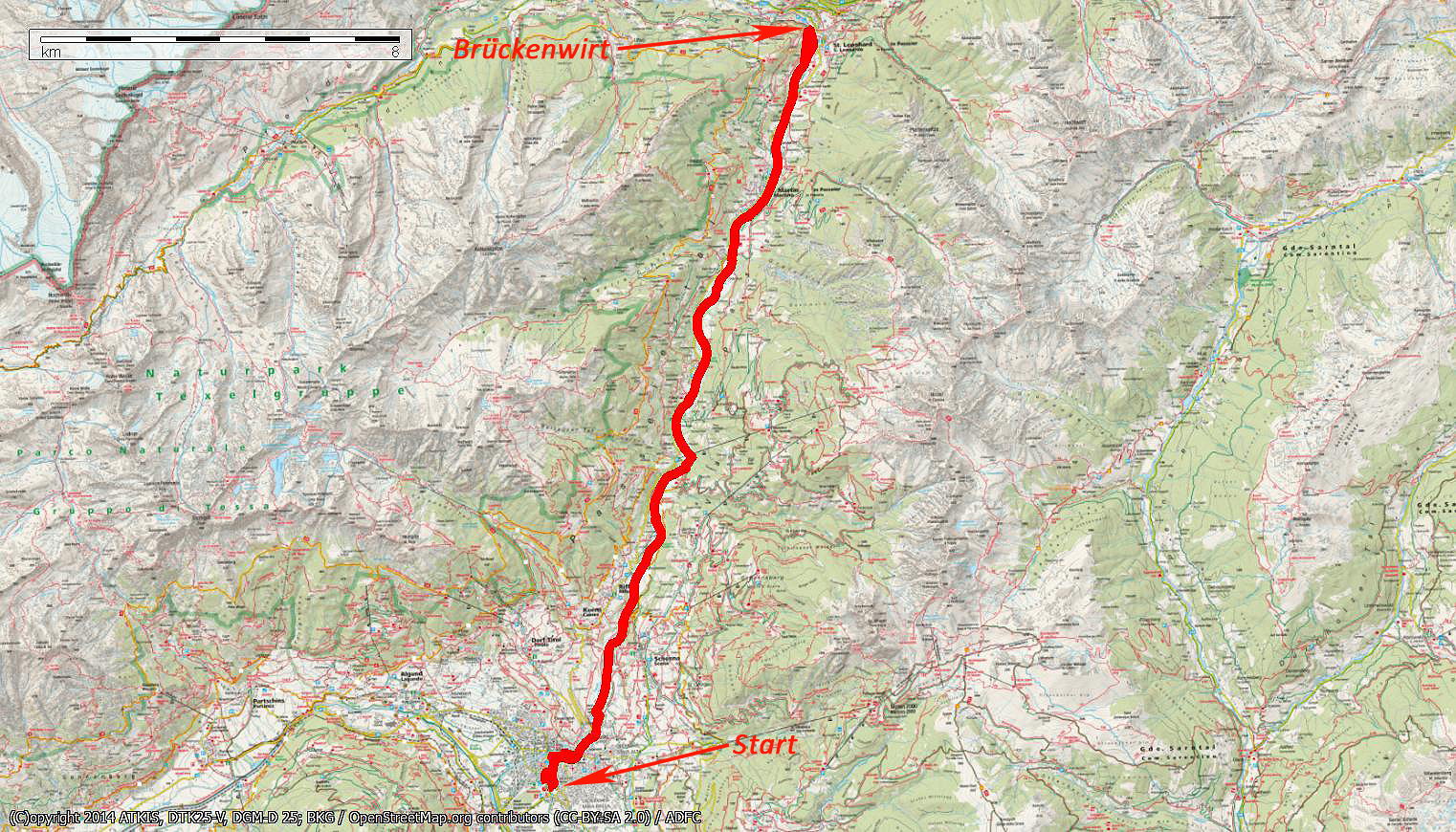 | Karten | Tabacco 011 "Meran und Umgebung" + 039 "Passeiertal" 1:25000 |