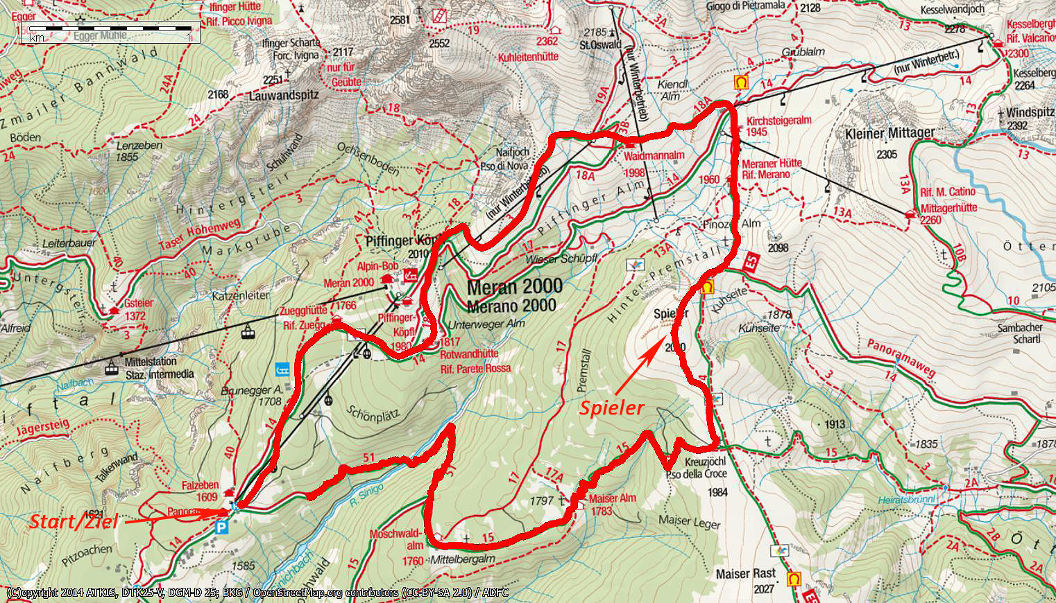 | Karten | Tabacco 011 "Meran und Umgebung" 1:25000 |