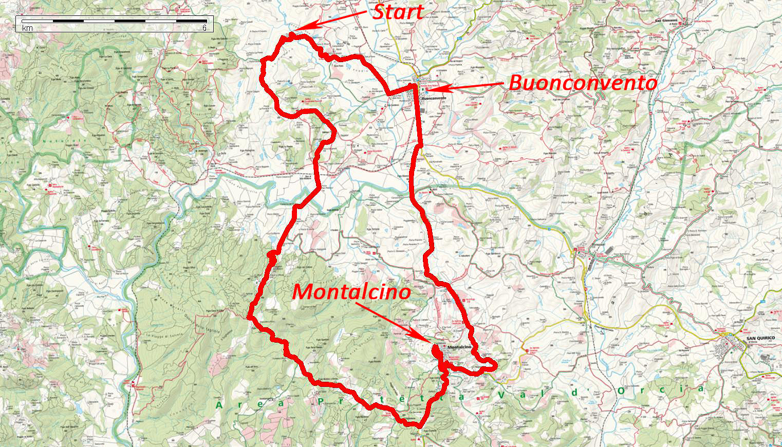 | Route | Tour 1: Podere Pieberti - Castiglione del Bosco - Montalcino - Buonconvento - Podere Pieberti Tour 2: Podere Pieberti - Buonconvento - San Giovanni d'Asso - Montisi - Trequanda - Abbazia di Monte Oliveto Maggiore - Buonconvento - Podere Pieberti |