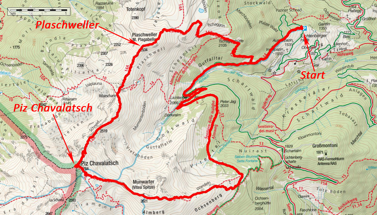 | Aufstieg | ca. 1400 Hm, 4 Stunden 40 Minuten (bis Piz Chavalatsch) |