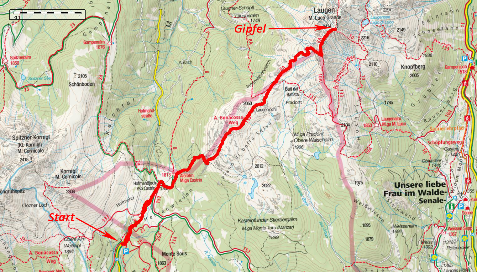 | Persönliche Bewertung | ** ca. 13 km; nicht der übliche Anstieg auf den Laugen, daher auch weitaus weniger begangen. |