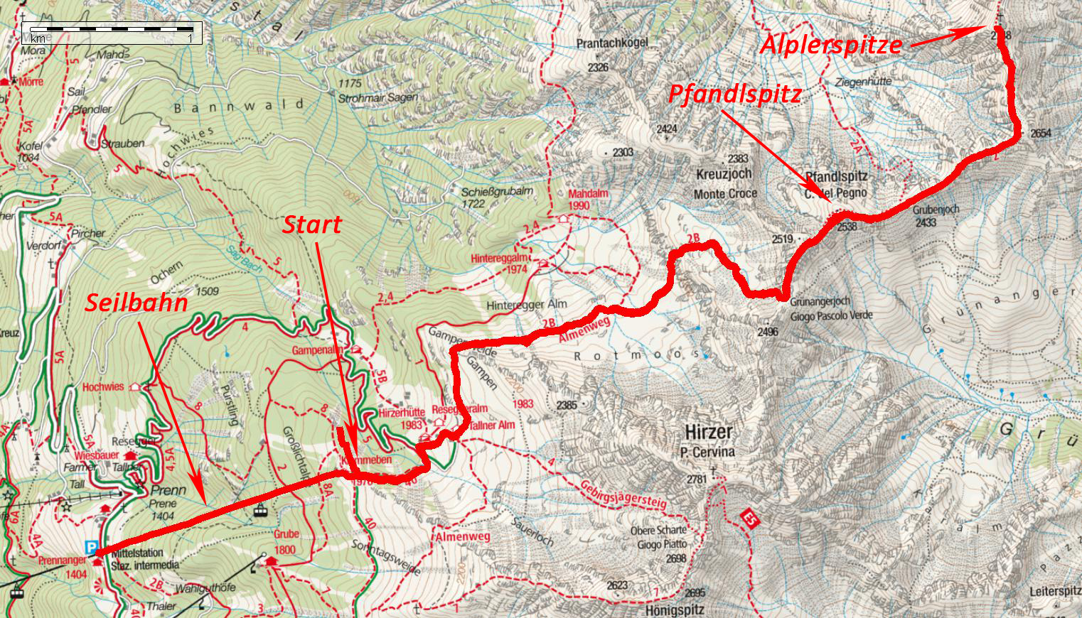 | Ausgangspunkt | Bergstation Hirzer Seilbahn (1980 m) |
