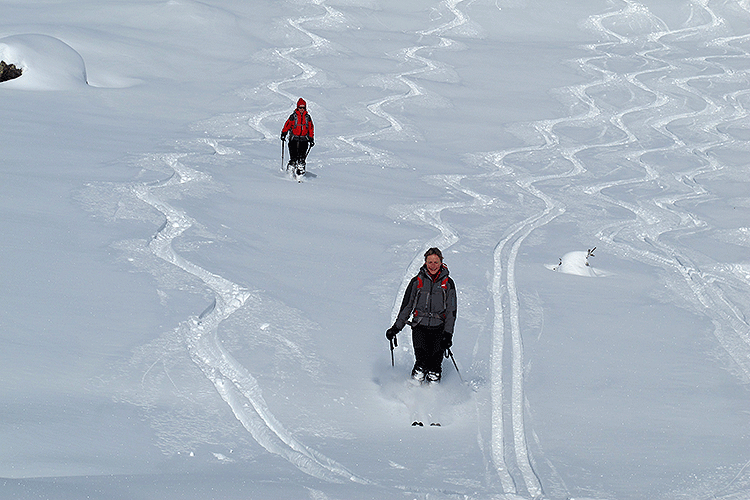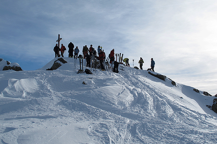 | Persönliche Bewertung | *** südseitig mit Sonne, daher nur im Hochwinter nach Schneefällen, da auch ziemlich lawinensicher, nur Hang unterhalb Gipfel etwas steiler, aber alles wird bereits am ersten Tag nach Schneefällen so stark befahren, dass eigentlich alles sicher ist. |