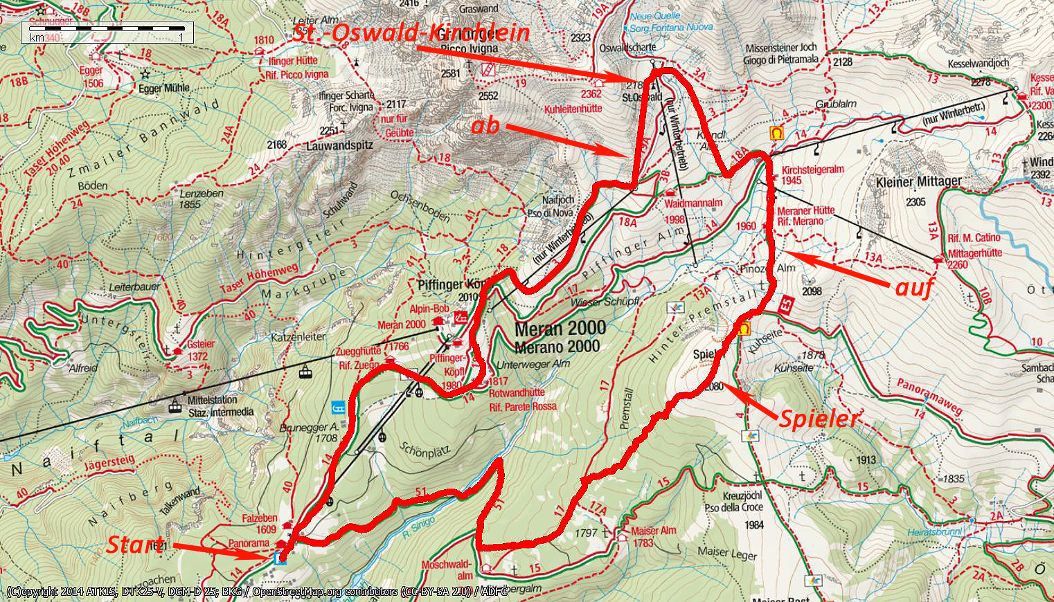 | Karten | Tabacco 011 "Meran und Umgebung" 1:25000 |