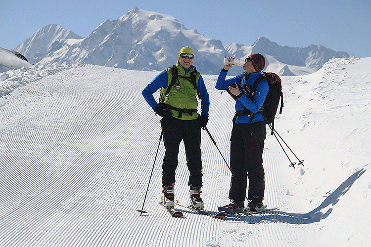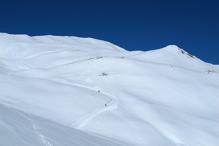 | Persönliche Bewertung | ** 9,75 km; Pistenschitour, wenn auch meist abseits der Piste; Ratrakspur bis zum Gipfel; wunderschönes Wetter. |