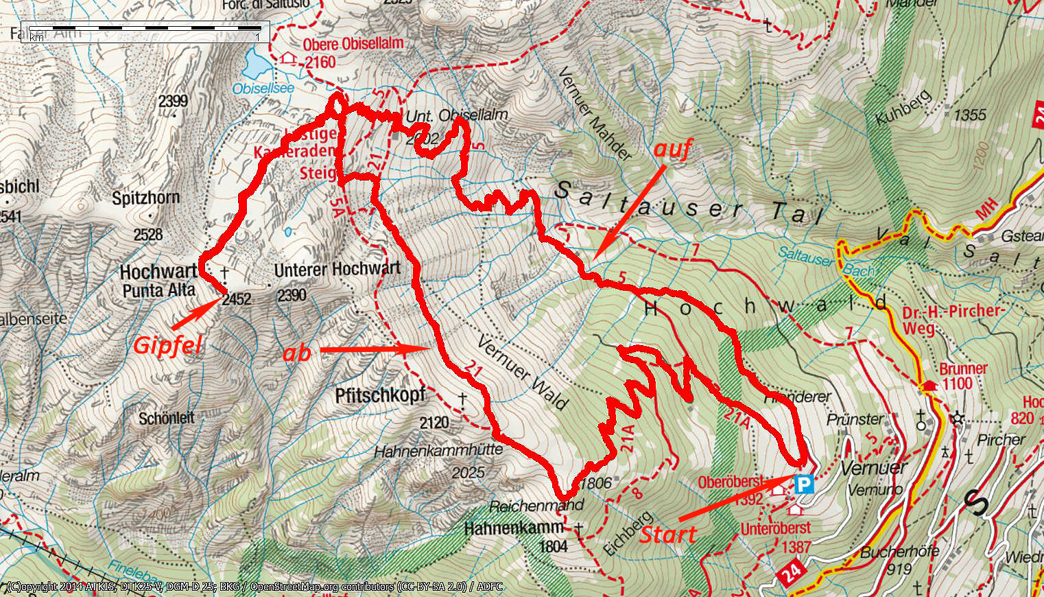 | Karten | Tabacco 011 "Meran und Umgebung" 1:25000 |