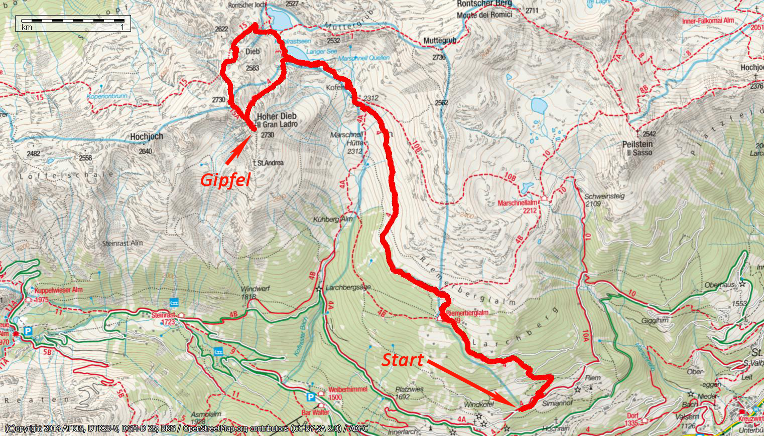 | Karten | Tabacco 042 "Ultental" 1:25000 |