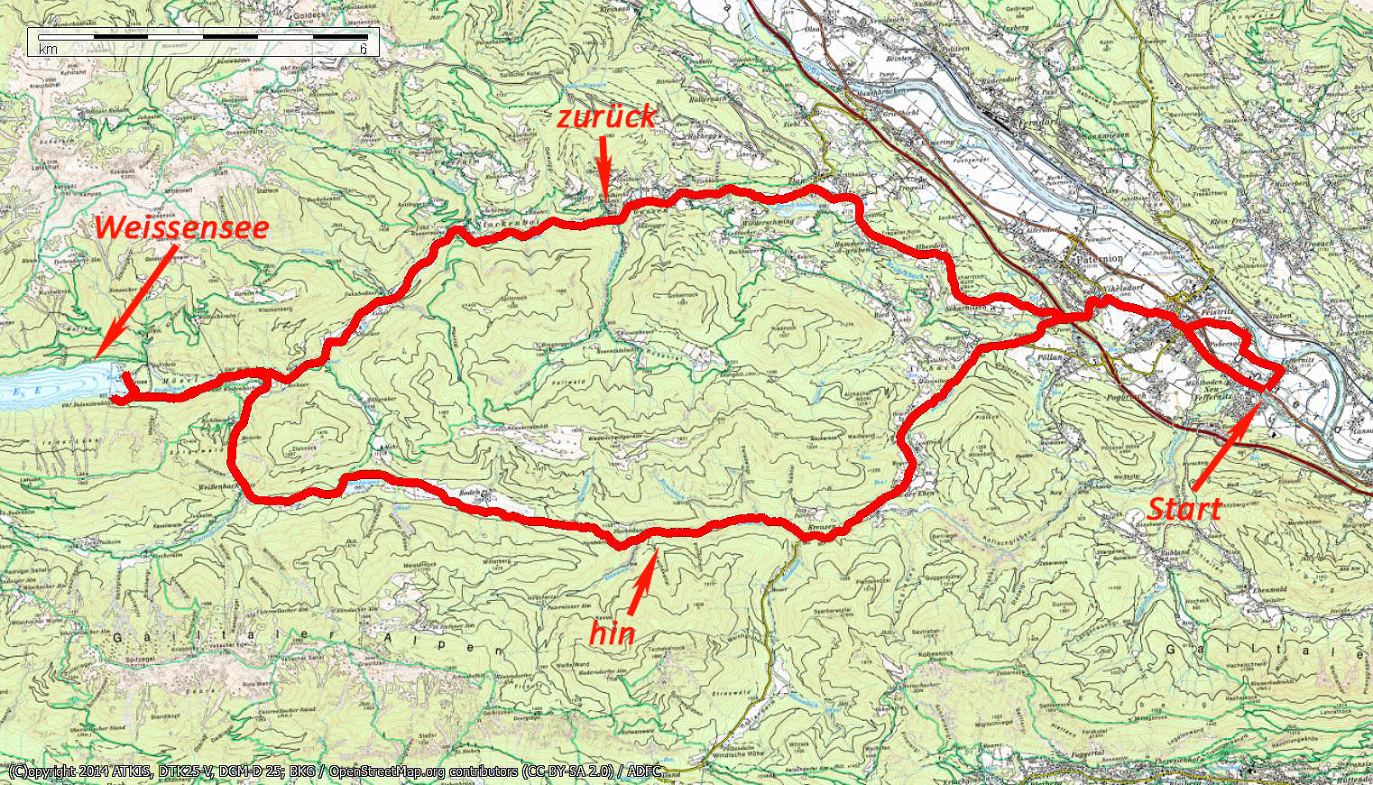 | Route | Nikelsdorf, Kreuzen, Farchensee, Weissensee, Stockenboi, Gassen, Zlan |