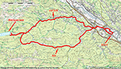 | Persönliche Bewertung | *** ca. 56 km; Landstraßen, abwechslungsreich, bis Kreuzen steil. |