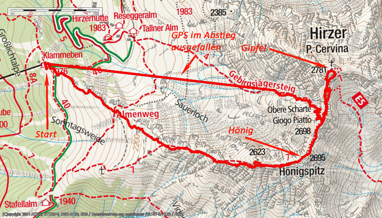 | Persönliche Bewertung | ** ca. 8,5 km; Gipfel des Hirzer viel begangen, Hönig etwas weniger, da eher ausgesetzt. Es wird der Hönig überschritten und weitere Erhebungen. Teilweise steil und ausgesetzt. |