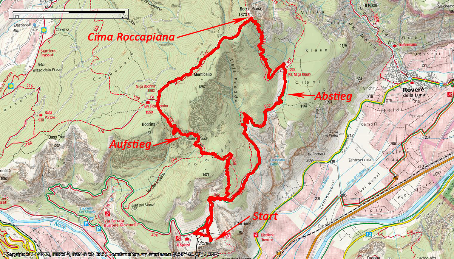 Alles in allem nette Tour für die Übergangszeit. Im Sommer, oder auch nur bei starkem Sonnenschein wäre der Anstieg durch die Latschengassen ein schweißtreibendes Vergnügen; der Anstieg über die Malga Kraun ist eigentlich der bessere: kürzer, nicht so ausgesetzt und steil.