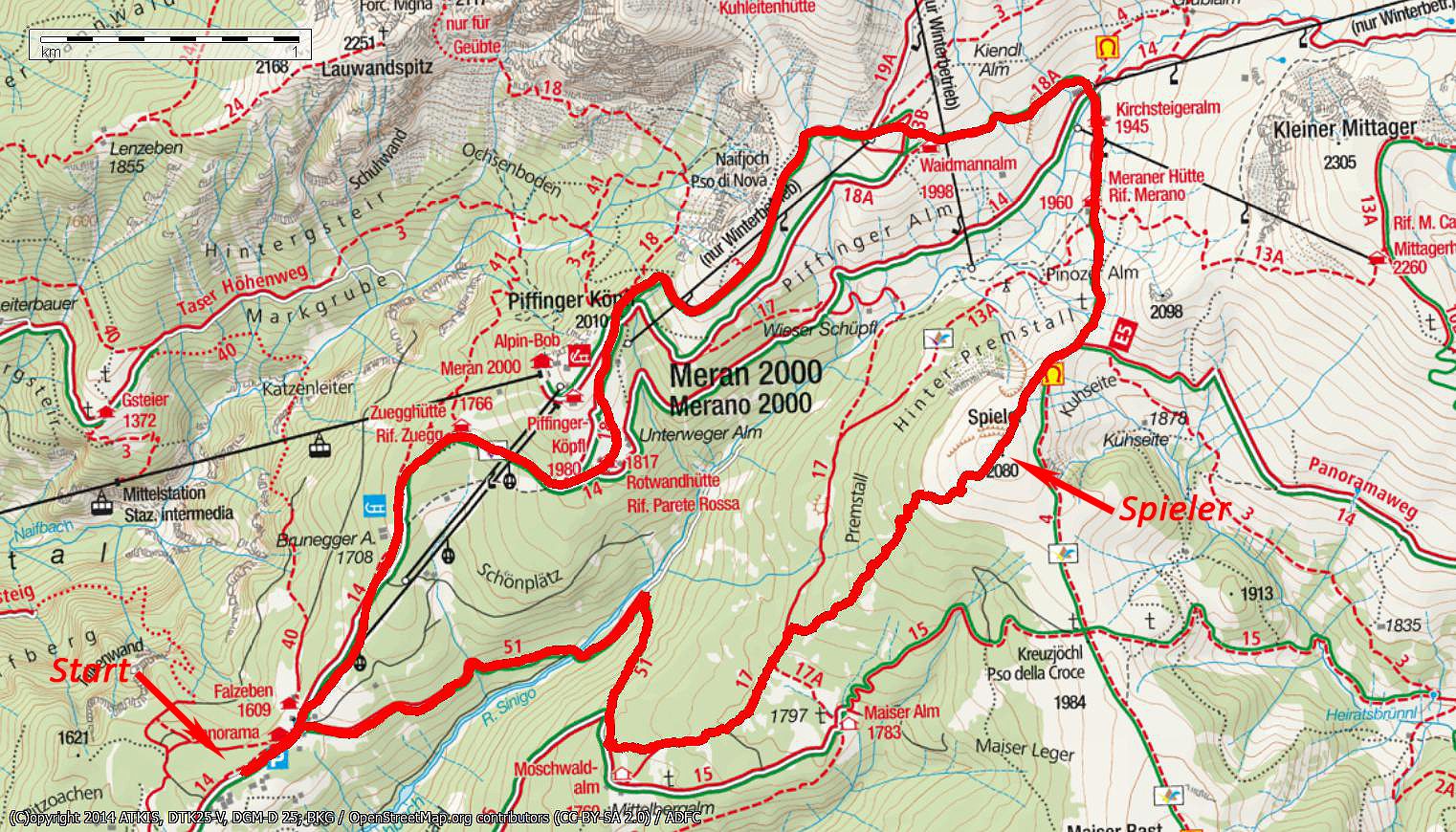 | Karten | Tabacco 011 "Meran und Umgebung" 1:25000 |