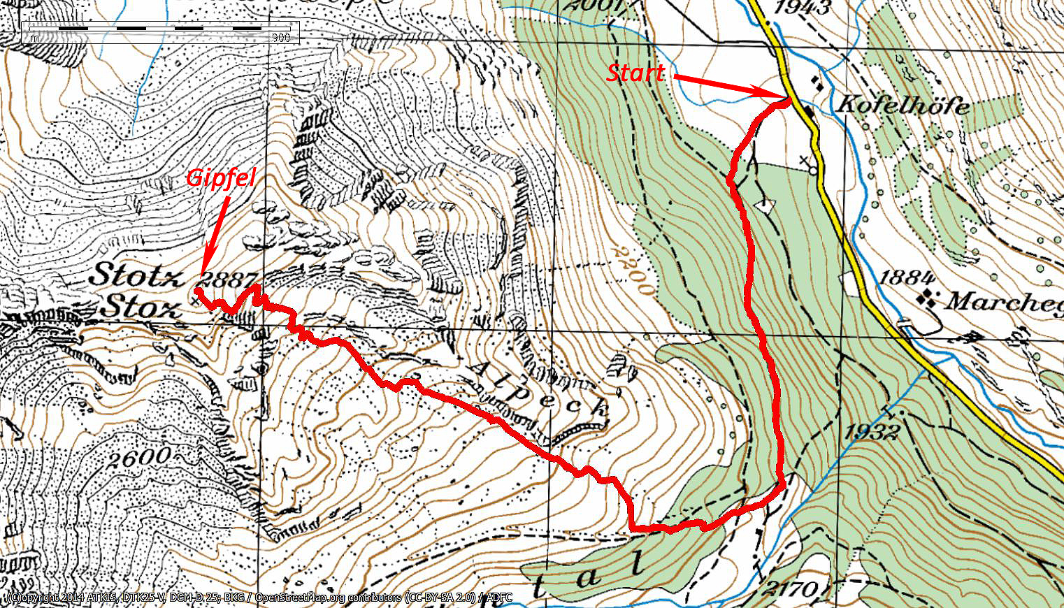 | Persönliche Bewertung | ** Kurz (9,1 km); schöne, kurze Schitour, im oberen Bereich freie Hänge, im unteren Teil schmaler und steiler Steig, kann bei Vereisung unangenehm sein |