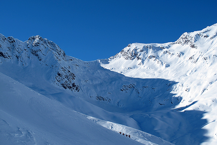 Alles in allem ein toller Schitourentag, sonnig, fast wolkenlos, nur im Tal windig, oberhalb der Ebenpergerhütte teileweise sogar warm. Schöner Gipfel. Das letzte Mal war ich am 08.02.2003 auf der Seeblspitze, war auch das erste Mal. Laut meinen Aufzeichnungen waren wir damals im Aufstieg etwas schneller, aber dafür bei der Abfahrt langsamer :-))