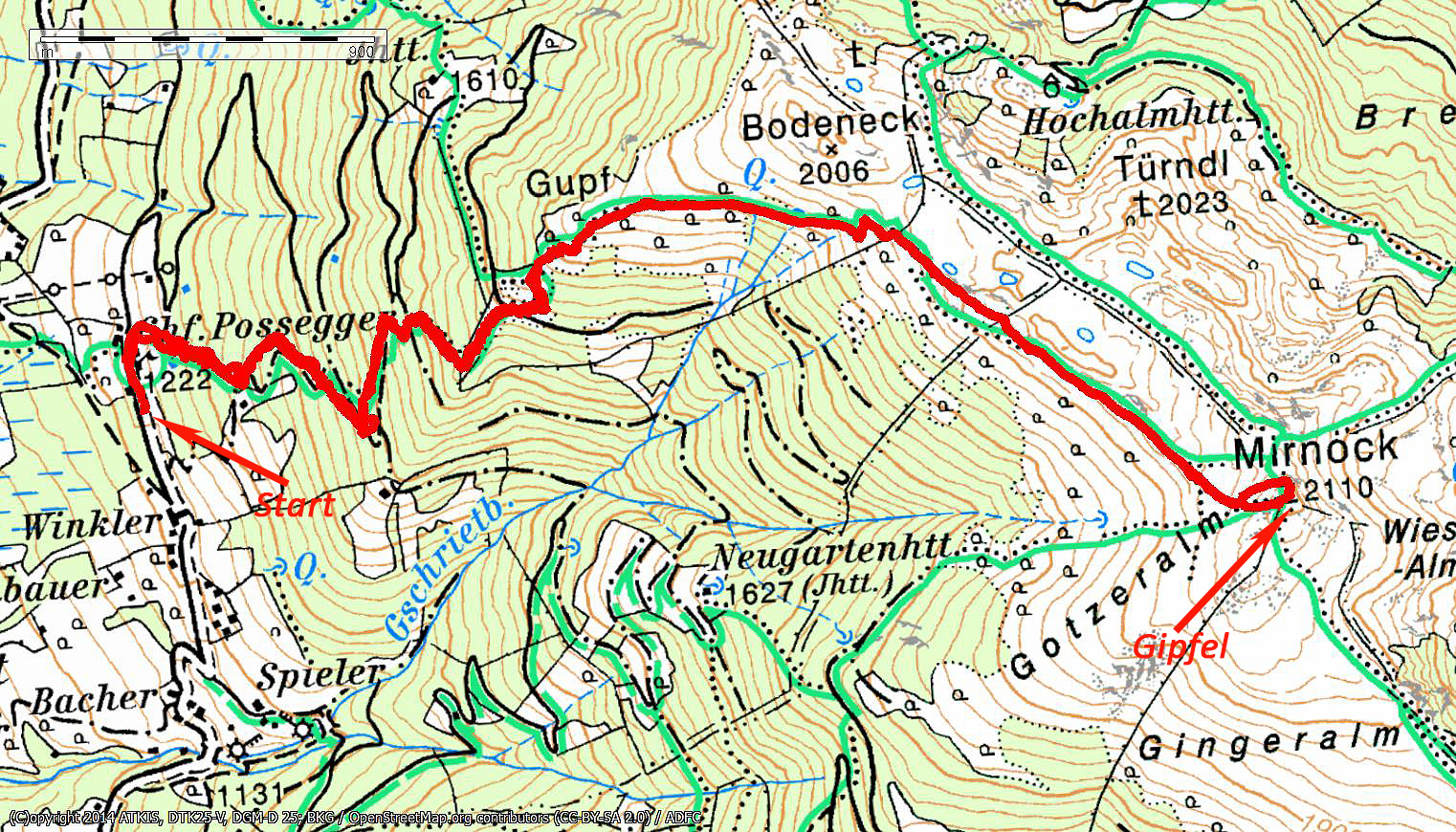 | Ausgangspunkt | Gasthof Possegger ("Renates Einkehr", 1222 m) |