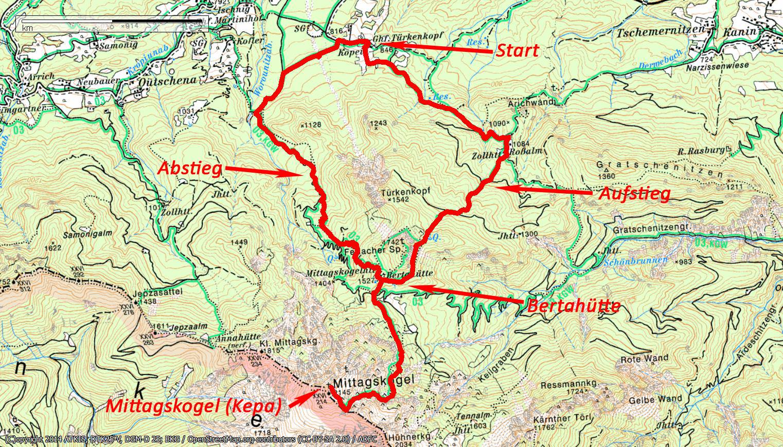 | Ausgangspunkt | Gasthof Sticker (846 m) |