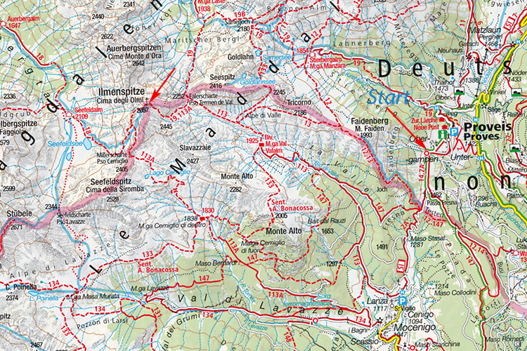 Kleine Werbung am Rande: ich habe mir vor einiger Zeit eine App aufs iPhone geladen, nämlich Scout von MagicMaps und mir dazu als in-App-Kauf einige Karten angeschafft, darunter Südtirol West und Ost sowie die angrenzenden Bereiche vom Unterengadin über Ötztal bisSalzburg und Kärnten und Gardasee. Die App hat glaube ich € 4,99 gekostet und jede Karte zwischen € 1,59 (war ein Sonderpreis) und regulär € 3,59. Die italienischen Bereiche basieren auf den Kompaß-Karten, während die schweizer und österreichischen Blätter den Landeskarten entsprechen. Wenn man weiß, wieviel die schweizer Landeskarten in deren App kosten, dann sind die Preise von MagicMaps nachgeschmissen. Jedenfalls ist es sehr bequem, nur das Handy in die Hand nehmen zu müssen, um zu sehen, wo man sich befindet, anstatt lange mit einer Landkarte herumzufummeln (Karte habe ich trotzdem immer dabei, Batterie kann auch fertig sein). Kann die App jedenfalls uneingeschränkt empfehlen.