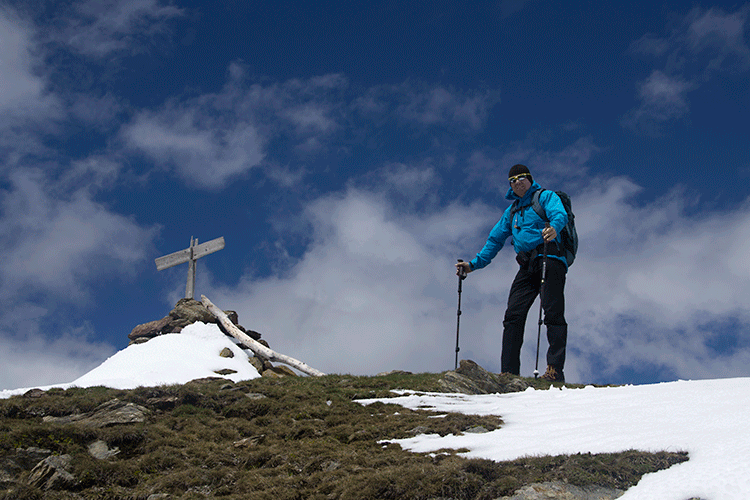 Wir waren längere Zeit nicht mehr Berg gegangen und so wollten wir einerseits eine nicht zu lange Tour wählen und andrerseits war unsere Kenntnis der Schneelage nach den letzten Schneefällen nicht so ganz aktuell. Unsere Wahl fiel daher auf einen alten Bekannten, nämlich das Hochjoch. Als Aufstiegsroute wählten wir den Weg über die alte Gondaalm, was zumindest für mich neu war. Ich hatte schon oft den Abstieg vom Hochjoch Richtung Neue Gondaalm gemacht, aber immer weglos, da ich die Markierungen schon knapp unter dem Gipfel immer verloren hatte. Nach der Tour weiß ich jetzt auch warum.