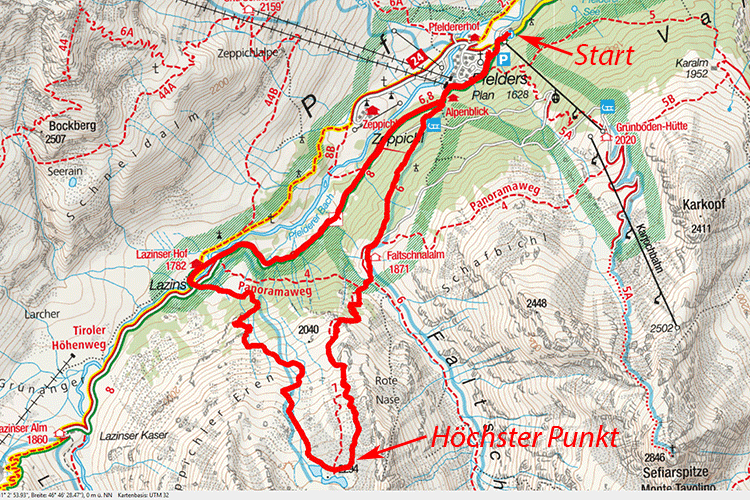 | Ausgangspunkt | Parkplatz vor Pfelders(1628 m) |