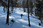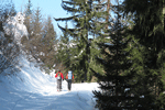 Also bin ich nicht allzufrüh losgefahren und so gegen zehn vor neun beim Parkplatz gegenüber dem Sporthof los. Da ich mit Schneeschuhen unterwegs bin, gehe ich die Straße aus, anstatt wie mit Schi üblich direkt den Hang hinauf. Eine Biegung weiter oben wird abgekürzt und bald ist der Anfang der Forststrasse erreicht. Es geht nun das Klapfbergtal hinein, bis eine Forststrasse Richtung Londaialm abzweigt. Weiter über diese Strasse; nach der ersten Kurve wird durch den Wald abgekürzt. Dann wieder ein Stück auf der Forststrasse, bevor die Spur endgültig die Strasse verlässt und steil durch den Wald bergan geht. Man kann auch der Strasse folgen und erst kurz vor der Londaialm abzweigen, aber diese Variante habe ich immer nur in der Abfahrt, wenn überhaupt, gewählt. In der Zwischenzeit haben mich einige Schitourengeher und ein Schneeschuhgeher überholt. Ich bin überrascht, dass überhaupt soviele Schitourengeher unterwegs sind (bis zum Schluß kommen 11 Schitourengeher zusammen); hätte eigentlich damit gerechnet, dass diese bei diesem schönen Wetter und LWS 2 eher an höheren Bergen unterwegs sind. Nach knapp zwei Stunden beginnt sich der Wald zu lichten, aber ich weiß aus der Erinnerung, dass es dann immer noch ein schönes Stück ist. So langsam geht mir die Puste aus, aber bevor sie ganz zu Ende ist, bin ich nach 2 Stunden und 40 Minuten am Gipfel. Die Tourengeher, die mich überholt haben, sind mit Ausnahme des Einzelgängers mit Hund, alle noch am Gipfel. Ich halte mich nicht lange auf, sondern gehe gleich weiter, da ich erst auf der Londaialm rasten will. Üblicherweise bin sonst immer noch ca. 100 Hm bis zum richtigen Gipfel weitergegangen, aber heute reicht mir das Kreuz. Ich folge einer Aufstiegsspur Richtung Alm; als diese aber ein Stück vor der Alm nach unten geht und die Alm im Schatten liegt, raste ich hier im Schnee, wo noch Sonne scheint. Willi lasse ich angeleint, da er verdächtig Richtung Wald schnuppert. Während ich marende, fahre ein paar Schitourengeher in meiner Nähe ab. Ich bin sonst immer bis zur Londaialm gefahren und habe dann dort, kurz vor der Alm, eine Waldschneise genutzt, um Richtung Talboden zu fahren. Ist anfangs ziemliche steil (also nichts bei zu hoher LWS) und noch bewaldet, aber die Schneise öffnet sich bald und dann liegt ein schöner Hang bis zur unteren Forststrasse vor einem. Scheint, als ob dies diese Tourengeher nicht wüssten. Nach der Rast folge ich der Aufstiegsspur weiter und komme wie erwartet zur Forststrasse, die zur Alm führt. Auf der Strasse geht's talaus; es zieht sich ziemlich, vor allem, da ich müde bin. Aber dann komme ich zur Abzweigung mit der unteren Forststrasse und bin bald am letzten Hang. Im Abstieg gehe ich nicht mehr die Strasse aus, sondern in Falllinie den Hang hinunter. Wäre mit Schi leichter gewesen. Nach insgesamt 4 Stunden und 40 Minuten bin ich wieder beim Auto.
