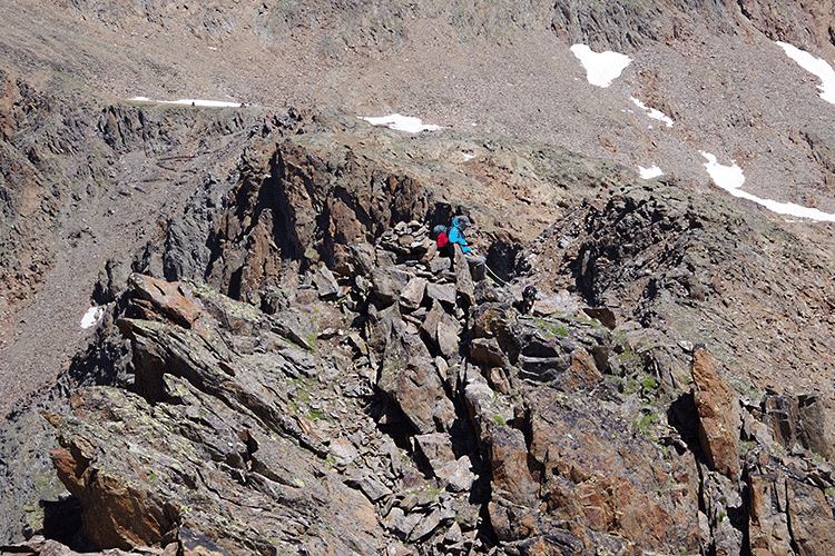 Der Gipfel ist sicher eher selten begangen, dazu ist er ab See zu unscheinbar und am Grat auch etwas zu schwierig, um viele Leute anzuziehen. An einem Tag wie diesem stellt er aber ein lohnendes, wenn auch anstrengendes Ziel dar. Der Ausblick ist grandios.