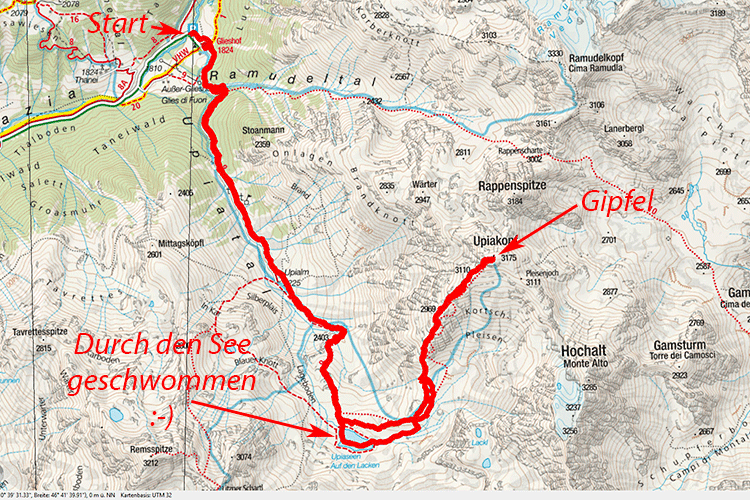 | Persönliche Bewertung | *** ca. 15,4 km; teilweise steil; Weg in Karte ab Upisee nicht richtig eingezeichnet; Weg geht nun direkt zu Vorgipfel (steil) und dann über Kamm zum Gipfel; erstmals andere Leute getroffen (4) und es ist immerhin zumindest das sechste Mal, dass ich am Gipfel stehe. |