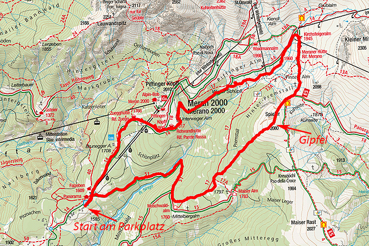 | Karten | Tabacco 011 "Meran und Umgebung" 1:25000 |