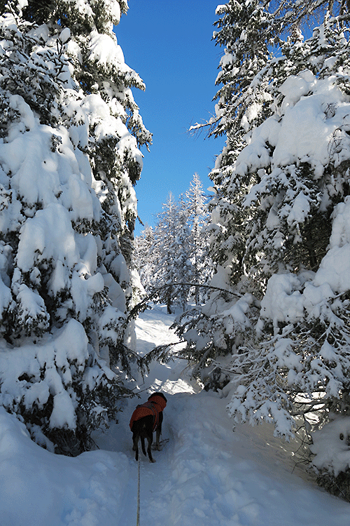 | Route | Forstweg, ab Moschwaldalm querfeldein |
