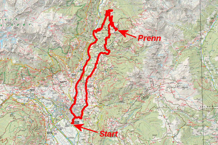| Route | Meran-Schweinsteg-Prenn-Untertall-Verdins-Meran |