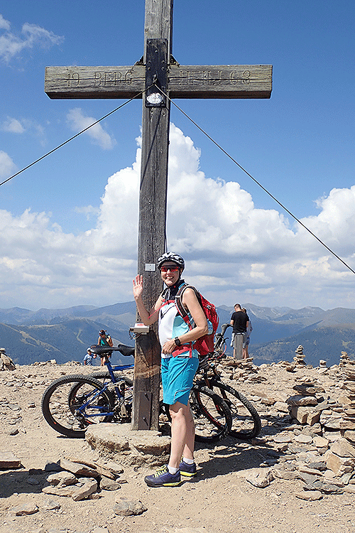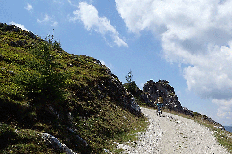 Insgesamt ganz nette Tour mit ca. 1100 Hm Auffahrt; wir nehmen uns aber vor, die ursprünglich geplante Tour mit den 13 km Singletrail am Kamm durchzuführen. Eli zieht in der Zwischenzeit vor, kurze Zeit in der kleinen Seilbahnkabine zu verbringen, als 1000 Hm auf einer Forststraße hinaufzukurbeln. Das Wetter ist gut, die Temperaturen angenehm und am Gipfel weht ein bißchen Wind. Alles in allem eine nette Tour.