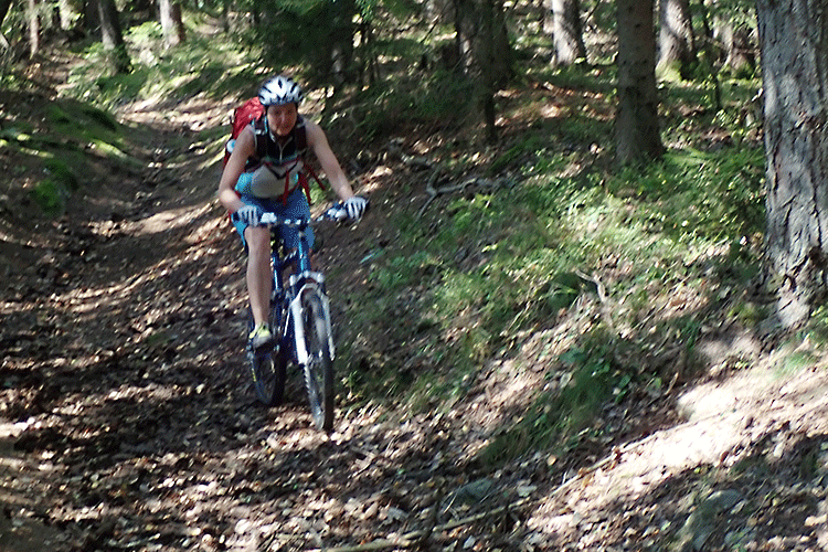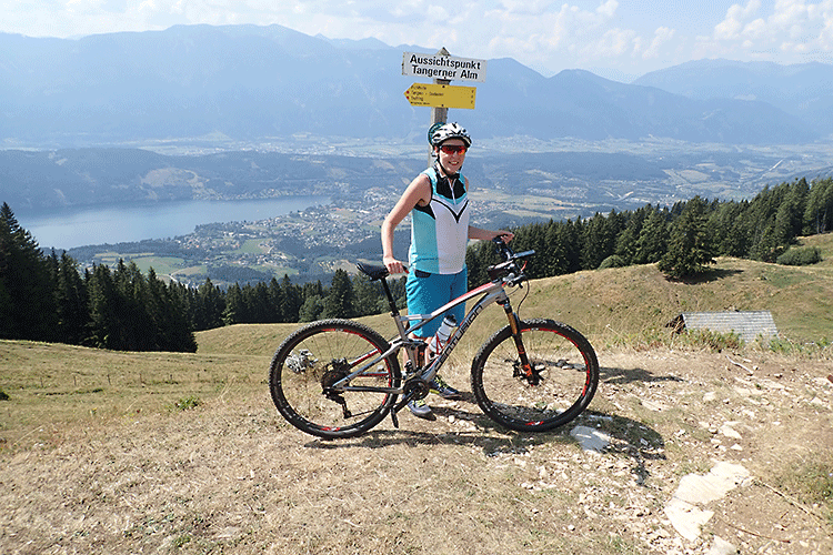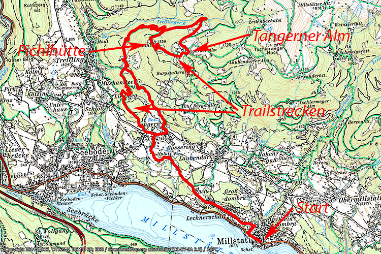Wir wollten mal eine geführte Tour mitmachen und haben bei Mountainbike-Station in Millstatt die 3-Hütten-Tour geBild1bucht (pro Person € 35 inkl. ein Energieriegel und eine Trinkflasche). Wir sind daher mit dem Auto bis nach Millstatt, haben dort auf dem Parkplatz des Einkaufszentrums geparkt und mit dem MTB dann zum Treffpunkt gefahren. Mussten ein bißchen warten, bis die Leihräder für andere Teilnehmer angepasst waren (für Gäste im Raum Millstatt mit Gästekarte ist die Tour gratis). Um 10 Uhr geht es dann im Pulk los. Auf abgelegenen Teerstraßen nach Tangern und ab da auf einem Forstweg. Wir sind zwar eher langsam, aber da die GBild2ruppe immer wieder rastet, vereinbaren wir mit dem Guide, dass wir ohne rasten einfach weiterfahren würden. Wir kurbeln die Forststrasse bergan, Kurve um Kurve, an der Abzweigung zur Pichlhütte vorbei unBild1d gelangen dann, die letzten paar Meter über einen Steig schiebend, bis zum Aussichtspunkt Tangerner Alm. Die Aussicht über den Millstätter See ist von hieraus genial. Bald treffen so nach und nach die anderen ein. Wir rasten noch ein bißchen, bevor es über den Steig zur Pichlalm geht. Wie es sich herausstellt, sind ein paar komplette MTB-Novizen dabei, die eigentlich mit einer Tour auf Forststraßen gerechnet hatten (obwohl die Ausschreibung auf der Website ausdrücklich von einer Tour für Fortgeschrittene, S1, spricht) und nun etwas überfordBild2ert sind. Sie entschließen sich, die schwierigen Stellen schiebend zu überwinden. Wir anderen fahren den Trail ab. An der Pichlhütte angekommen, warten wir bis alle zusammen sind. Da einige Wasser im Bad der Hütte naMapchfüllen, schlage ich vor, uns hinzusetzen und etwas zu konsumieren. Eli und ich nehmen Kaffee und ein alkoholfreies Hefe. Rund um die Hütte sind einige nette Schnitzereien zu bewundern. Nach ca. einer Stunde (die Rast hat sich dann hingezogen) starten wir zur weiteren Abfahrt. Größtenteils auf dem Anstiegsweg, weichen wir nur im unteren Teil auf einen Wanderweg aus (siehe Karte). Bald sind wir dann wieder in Tangern und rollen in leichtem Auf und Ab nach Millstatt.