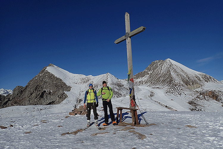 Alles in allem die üblich nette Eingehtour, die trotz Pistennähe, zumindest beim Anstieg richtiges Tourenfeeling aufkommen lässt. Schönes Wetter mit viel Sonne, bisschen Wind am Gipfel.