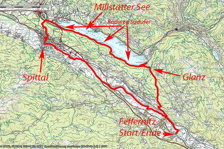 | Route | Drauradweg, Strasse nach Seeboden, Radweg Südwestufer, Strasse über den Glanz |