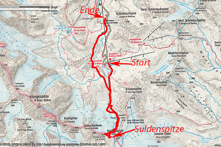 | Ausgangspunkt | Bergstation Suldenbahn (2616 m) |