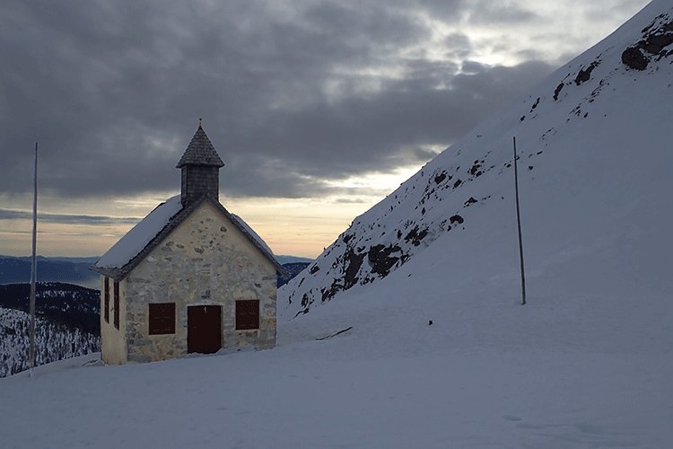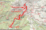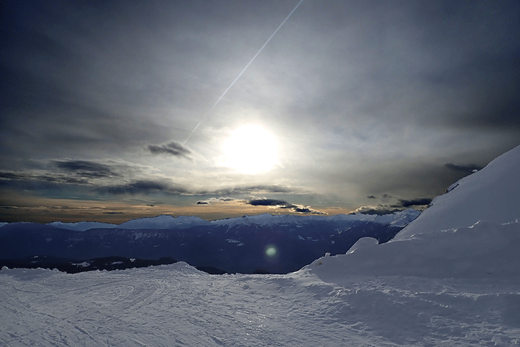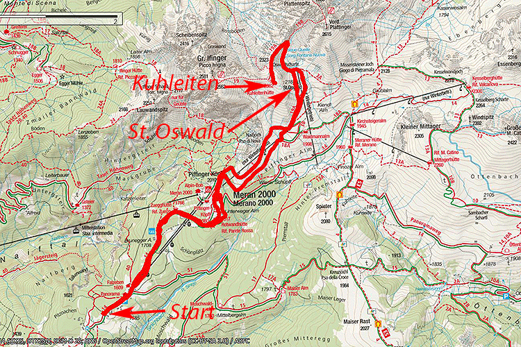 Um 20 vor eins starte ich vom Parkplatz; anfangs mit den Schi über der Schulter und von der Talstation dann mit angeschnallten Schi. Langsam gehe ich mit vielen anderen Wanderern auf dem Winterwanderweg bergan. Andere Male bin ich über den Spieler auf Kuhleiten gegangen, diesmal habe ich den kürzeren Weg gewählt, auch angesicht der späten Stunde. Bald nach der Rotwandhütte überholen mich zwei Italiener; stört mich nicht. Ich gehe mein Tempo. Es ist zwar langweilig auf diesem Winterwanderweg unterwegs zu sein, aber was solls. Früher bin ich bald nach der Rotwandhütte Richtung Schiweg aufgestiegen, inzwischen geht der markierte Weg aber anders und bleibt tiefer. Kurz vor der Weidmannalm entschließe ich mich dann aber, den Weg zu verlassen und einer Spur zu folgen die zur Bergstation des Liftes führt. Ich überquere dort den Schiweg und ziehe meine Spur oberhalb des Schiweges; manchmal etwas anstrengend. Kurz vor dem Anstieg zum St.-Oswald-Kirchlein kommt der Wanderweg dann zur Piste und führt am Rand der Piste zur Bergstation des St.-Oswald-Liftes. Ich steige außerhalb der Piste selbständig zum St.-Oswald-Kirchlein auf und dann an diesem vorbei zum Wanderweg. Erinnerungen werden wach. Als 8-ähriges Kind habe ich auf Meran 2000 meinen zweiten Schikurs gemacht (den ersten habe ich das Jahr zuvor am Vigiljoch absolviert, da damals Meran 2000 meiner Erinnerung nach noch nicht in Betrieb war). Die Seilbahn von der Naif aus gab es nicht und man benutzte die alte Haflingerseilbahn und fuhr dann mit dem Bus nach Falzeben. Von Piffing führte eine offene Gondelbahn ins Kesselberggebiet. Es gab drei Lifte: einen Doppelschlepplift auf den Kesselberg und je einen Sessellift auf den Mittager und Kuhleiten. Von der Bergstation Kuhleiten, heute seit einigen Jahren wieder als Hütte auch im Winter betrieben vor allem für Pistenschitourengeher, fuhr man entweder den nicht so breiten Rücken bis in die Oswaldscharte oder in Fahrtrichtung rechts den Steilhang hinunter. Ungefähr dort, wo heute die Bergstation des Oswaldliftes ist, trafen die beiden Varianten wieder zusammen. Der Steilhang war eine riesen Mutprobe für uns Dreikäsehochs. Infolge der Steilheit war der Hang nicht präpariert und daher nach kurzer Zeit eine Buckelpiste. Die Buckel waren fast so groß wie wir Zwerge hoch waren und wenn wir unten am Steilhang standen, sind wir fast vor Stolz geplatzt. Der Kuhleitensteilhang war viel höher eingestuft, als der Steilhang bei der Zuegghütte. Um bei der Wahrheit zu bleiben, sind wir den Kuhleitensteilhang nicht so oft gefahren, aber es war jedesmal eine Mutprobe. Manchmal sind wir den halben Hang nach einem Sturz am Bauch runter gerutscht. Was soll ich sagen, ich bin nicht mehr der Jüngste und jedesmal wenn ich bei einem Berg denke, "als ich vor x Jahren da rauf gegangen bin", wird mir das bewusst. Kurz vor der Kuhleitenhütte treffe ich einen einzelnen Wanderer mit Pickel. Er ersucht mich ein Foto von ihm mit Ifinger im Hintergrund zu machen und erzählt mir, dass er gerade oben war. Chapeau! Nach isgesamt 2 Stunden und 35 Minuten bin ich bei der Kuhleitenhütte und kehre ein. Es sind nur mehr wenige Gäste auf der Hütte; ich trinke einen heißen Tee und einen Kaffee, bevor ich mich wieder an die Abfahrt mache. Ein paar Bögen im oberen Teil des Kammes, dann Schußfahrt, um den kleinen Gegenanstieg zu überwinden. Gelingt nicht ganz, musMaps ein paar Schritte im Schlittschuhschritt aufwärts schieben. Dann wieder abwärts. Die Sicht ist nicht mehr die beste; bin etwas vorsichtig. Dann erreiche ich die Piste und den Schiweg. Ein paar Carvingschwünge und den Schiweg größtenteils geradeaus. Die Oberschenkel brennen. Kurz vor Piffing folge ich dem Winterwanderweg bis zur Piste und weiter zur Zuegghütte. Die Piste ist eher flache, aber es ist Platz umd auf der Kante zu kurven. Und dann ist schon Falzeben da. Die letzten Schwünge und dann abschwingen, Schi ausziehen, Schuhe öffnen. Schi auf die Schulter und bis zum Auto gestapft. Die Sonne geht unter und beleuchtet die Wolken von unten.