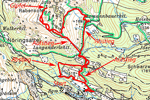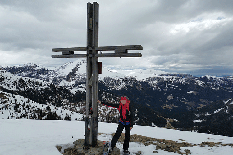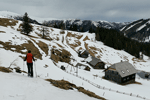 Haben eine Tour in der näheren Umgebung von Feffernitz gesucht, die auf jeden Fall auch lawinensicher ist. Lawinensicherheit eigentlich bei LWS 1 kein Problem. Irgendwie kommen wir auf das Stileck, das man über den Rabenkofel erreicht und eventuell zum Langnock ausgeweitet werden kann. Wir geben in aller Frühe Willi bei der Tante von Eli ab und fahren nach Radenthein. Da die Brücke über die Drau in Feistritz wegen Sanierung gesperrt ist, müssen wir nach Paternion fahren und dann über Ferndorf auf den Glanz und weiter nach Döbriach. Bald erreichen wir Radenthein und nehmen nach der Stadt die Abzweigung nach Kaning. Im Gegensatz zum letzten Sommer, als wir durch Kaning und weiter durchs Langalmtal zum Erlacherhaus gefahren sind (Großer Rosennock), zweigen wir vor Kaning Richtung Magnesitbruch Schwarzwald ab. Das Sträßchen geht einige Kilometer entlang des Globatschbaches bis wir den Parkplatz vor dem Magnesitbruch erreichen; im Sommer sollte man irgendwo vor der Brücke über den Bach parken. Jetzt im Winter stört es niemand, wenn man bei den Werkshäusern parkt. Bringt insgesamt ein paar Meter mehr zu gehen. Wir sind relativ früh (für unsere Verhältnisse :-)) aufgestanden und starten knapp vor neun. Wie gesagt ein paar Meter zurück bis zur Abzweigung und dann auf der Strasse weiter bis zum Wegweiser, der über die Wiese Richtung Wald zeigt. Im Wald wird es dann zwischendurch schwierig den richtigen Steig zu finden, da kein ausgeprägter Steig da ist und die Markierungen etwas spärlich sind. Im Sommer kaum ein Problem, aber jetzt im Winter verdeckt der Schnee die Steigspuren. Aber da die Richtung klar ist, nämlich aufwärts, folgen wir wahrscheinlich nicht genau dem Steig, aber finden immer wieder Markierungen. Zwischendurch kreuzen wir Forstwege, die wir auch benutzen könnten, die aber laut Karte doch einige Umwege machen. Wir verlassen den Wald auf ca. 1680 m und nehmen den Weg Richtung Thomannbauerhütte mit geringem Höhenverlust. Bald nach dem ersten Gatter folgen wir Schispuren, die offene Hänge Richtung Rabenkofel hinaufführen. Manchmal etwas steiler, dann wieder etwas flacher, aber immer in einer Steilheit, die deutlich unter 30° liegt erreichen wir den Rücken, der zum Rabenkofel führt. Das Kreuz ist schon länger sichtbar, ebenso jenes des Stileck. Noch ein paar Schritte und wir sind beim Kreuz.. Es geht inzwischen ziemlich Wind und auch der Himmel macht keine Anstalten aufzureißen, obwohl der Wetterbericht versprochen hatte, dass am Nachmittag Sonne vom Himmel scheinen würde. Wir bescchließen, nicht bis zum Stileck weiterzugehen, sondern umzukehren. Aufgrund des kalten Windes am Gipfel steigen wir sofort ab; nicht über den Anstiegsweg, sondern Richtung Thomannbauerhütte. Trotz der niedrigen LWS 1 versuchen wir alle steileren Geländebereiche zu vermeiden, was uns auch relativ einfach gelingt. Bei der Thomannbauerhütte angekommen beschließen wir zu rasten. Gemütlich sitzen wir auf der Bank an die Hauswand gelehnt und verspeisen unsere Brote und den heißen Tee. Eine Winterwanderin kommt vorbei und will weiter auf dem Sommerweg Richtung Rabenkofel gehen. Bezweifeln, dass sie ohne Schneeschuhe weit kommt. Bald darauf kommt die Besitzerfamilie auf einem Traktor (alle vier Reifen sind mit Ketten bewehrt) an; sie hat noch einige Aufräumarbeiten zu erledigen, da der Wintereinbruch im November sehr abrupt erfolgt ist. Wir ratschen einen Moment mit ihnen, bevor wir uns auf den weiteren Abstieg machen. Auf den Spuren des Traktors bis zu unserer Aufstiegspur auf dem Rücken auf ca. 1800 m. Zuerst wollen wir dem Forstweg folgen, aber nach ein paar Meter sehen wir unterhalb des Weges die Winterfütterung für das Wild mit einigen Rehen. Um diese nicht unnütz zu stören, gehen wir zurück und steigen auf den Aufstiegsspuren im Wald ab, bis wir weiter unten wieder die Forststraße queren. Ab da folgen wir dieser; ist einfach angenehmer zu gehen. Nach kanpp 3 1/2 Stunden sind wir wieder beim Auto.. Fazit: eine schöne, kurze Winterwanderung bei nicht so gutem Wetter; aber die Winterlandschaft strahlt besonders unter diesen Verhältnissen eine Ruhe aus, die man im Sommer umsonst sucht. Nicht dass die Berge im Sommer nicht auch schön sind, aber mit anderen Akzenten. :-)